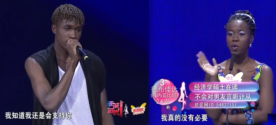 Following up from this previous post on representation of Africans in contemporary Chinese popular culture (i.e. the case of Xiao De in 非诚勿扰 – Feicheng wurao), this week this popular dating show featured their first ever black African male participant: Wei Long (26) from Namibia.