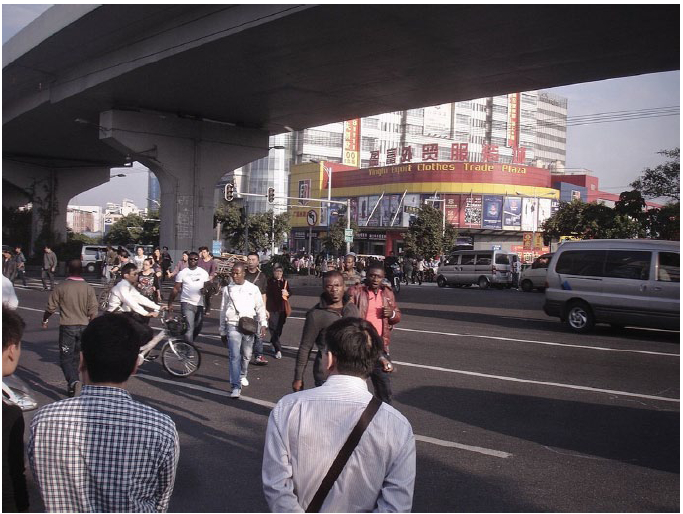 In fact, since 2008, foreigners in China have been categorized as ‘floating population’ (a common designation for internal migrants) and are supposedly subject to the rules and regulations controlling its management (Lan, 2014). It could then be said that Africans as a group (or ‘minority’ as Bodomo [2012] has called them) have been informally inserted into China’s complex systems of population control and, as a result, have been subject to the dynamics of surveillance used to police ‘Chinese’ ethnic minorities – dynamics that are best characterized by erratic but systematic control/repression. It is these dynamics that have been characterized by researchers, journalists and individuals (who are perhaps unaware of the experiences of other minorities) as racial profiling and discrimination aimed specifically at Africans.(9) So, while the historical experiences of internal migrants in Guangzhou are beyond the scope of this article, this comparison serves two interrelated purposes: first, it contextualizes African presence in the region within the complex translocal mobilities of southern China (mobilities which have been thoroughly explored by Ngai [1999, 2005] and Sun [2009] in their investigations of Chinese rural-to-urban migrations); and, second, it equates the experiences of Africans with the precarity, liminality and unbelonging of internal migrants, thus challenging the common assumption that the difficulties faced by Africans in China are (or have been) unique.(10)